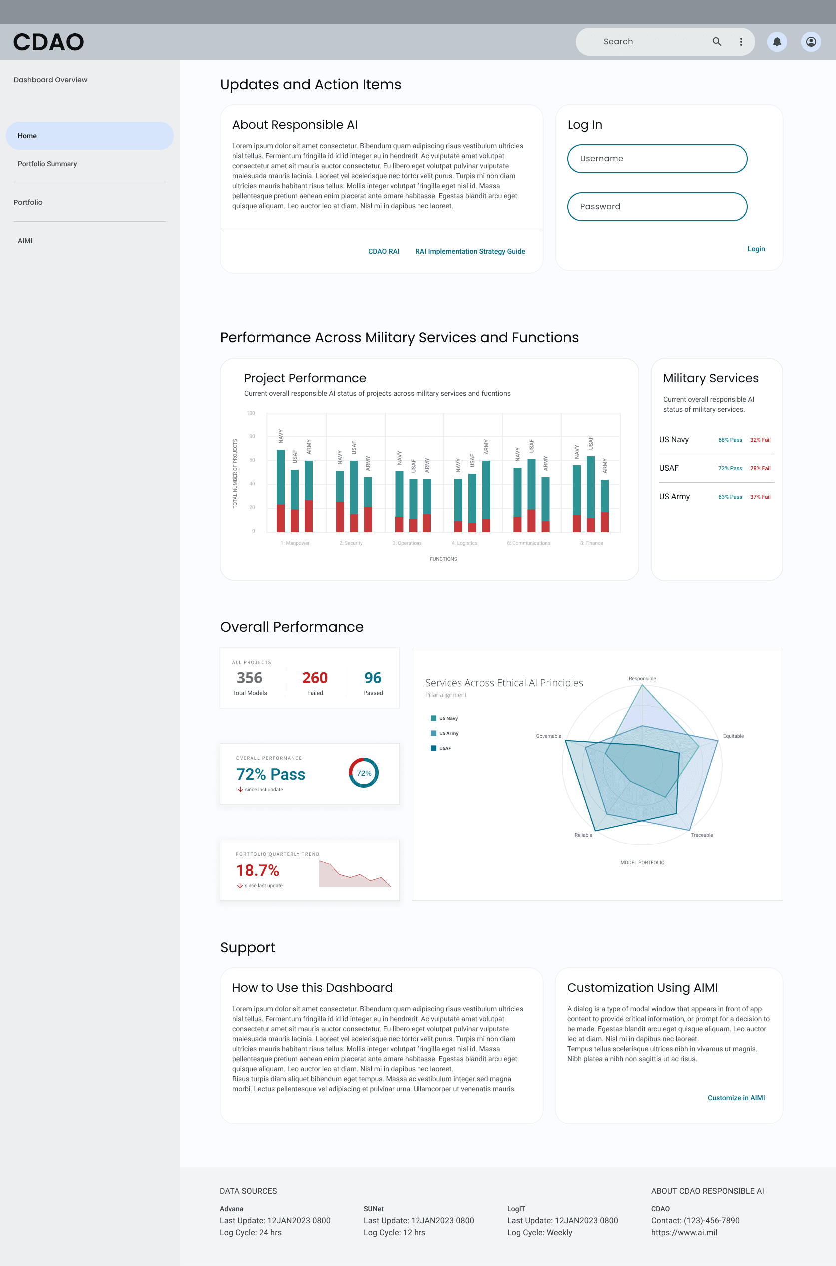 Design an enterprise platform for senior leaders across the military to track and understand the performance of their AI projects in accordance with the DoD's Responsible AI guidance